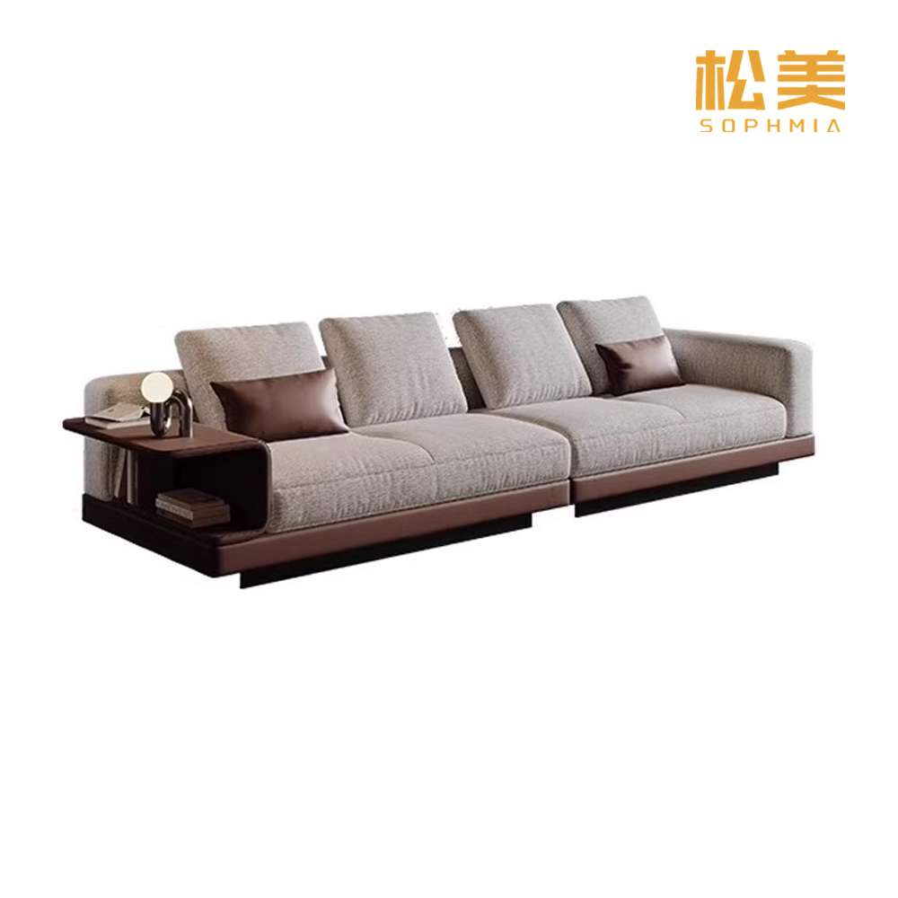 Наш современный тканевый модульный диван с боковой консолью для хранения сочетает в себе элегантную современную эстетику, гибкую функциональность и повседневную практичность, он изготовлен из прочной ткани премиум-класса и имеет прочный каркас из цельного дерева. Он воплощает в себе суть современного домашнего дизайна — универсальные модульные компоненты, скрытое удобство хранения и сдержанный шарм — становясь изысканным центральным элементом, который возвышает любое домашнее пространство. Этот диван имеет обтекаемый силуэт со съемными модульными секциями в сочетании с высококачественной тканью, которая обеспечивает мягкую, дышащую и приятную для кожи тактильную атмосферу, излучая свежую и уютную атмосферу.